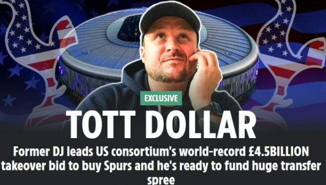 9 月 26 日讯,据《太阳报》独家报道,由科技企业家布鲁克林 - 厄里克组建的美国财团,已向托特纳姆热刺提出 45 亿英镑的创世界纪录总报价,这一数字不仅远超 2022 年伯利财团收购切尔西的 42.5 亿英镑,更比《福布斯》对热刺 26 亿英镑的估值高出 27%,若交易达成,将重塑英超俱乐部收购的价值格局。